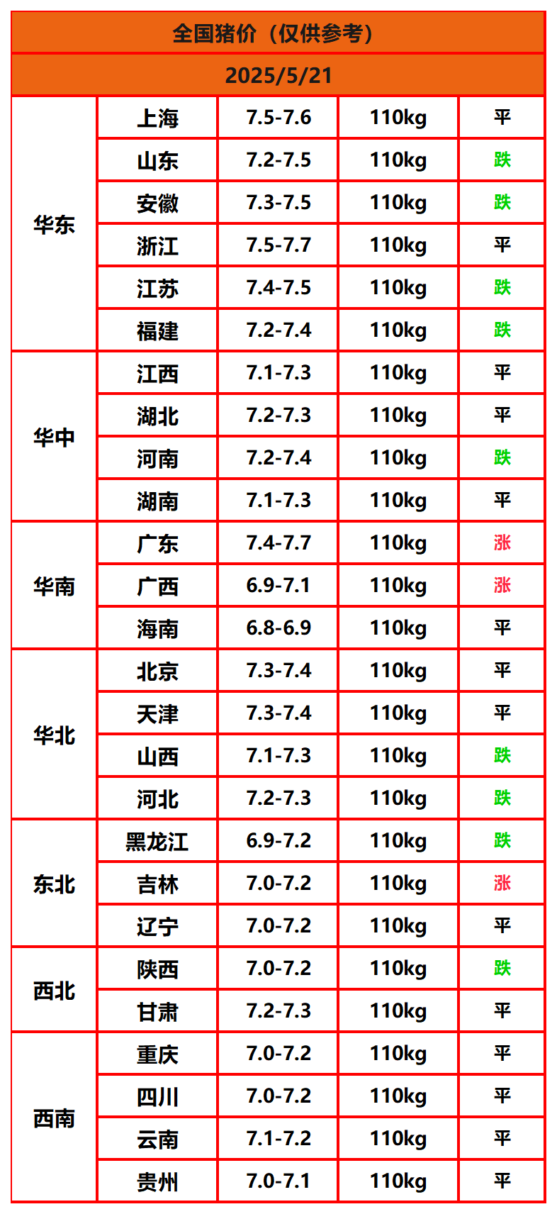今日猪价 | 2025年5月21日全国猪价行情一览表!