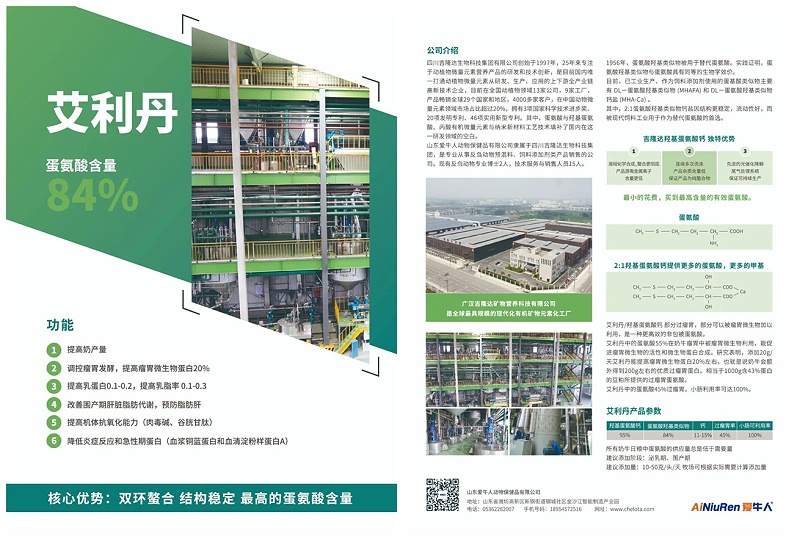 艾利丹:羟基蛋氨酸类似物含量84%,等量替换蛋氨酸。